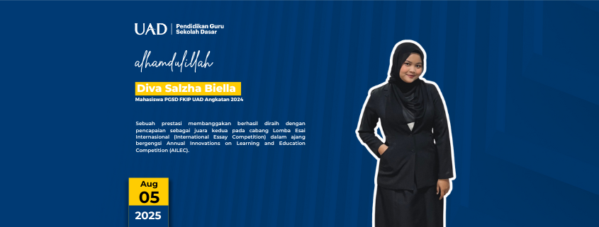 Yogyakarta (5/08/2025) – Kabar membanggakan datang dari dunia pendidikan tinggi. Prestasi gemilang kembali di ukir oleh mahasiswi PGSD FKIP UAD. Diva Salzha Biella berhasil meraih juara kedua dalam sebuah kompetisi bergengsi. Ajang tersebut adalah Annual Innovations on Learning and Education Competition (AILEC). Kemenangan ini menunjukkan kualitas serta kreativitas generasi calon pendidik bangsa. Kompetisi tersebut di ikuti oleh berbagai peserta dari berbagai negara.
