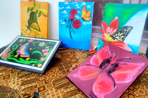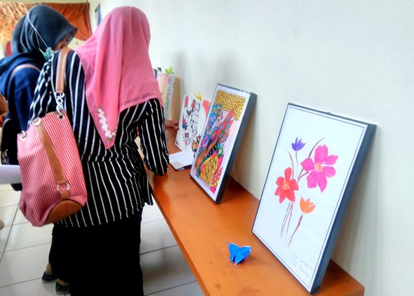 Senada dengan yang disampaikan Ganif, Wahyuning Utami mahasiswa kelas 6F, menyampaikan pengalaman yang didapat dari mata kuliah seni rupa yaitu mengetahui teknik-teknik dalam melukis. “Kami menjadi berani berekspresi menuangkan ide di dalam kanvas,” ujarnya. “Kami juga merasa bangga atas apresiasi pengunjung terhadap karya kami, semoga ada yang membeli karya kami,” imbuhnya sambil tersenyum.